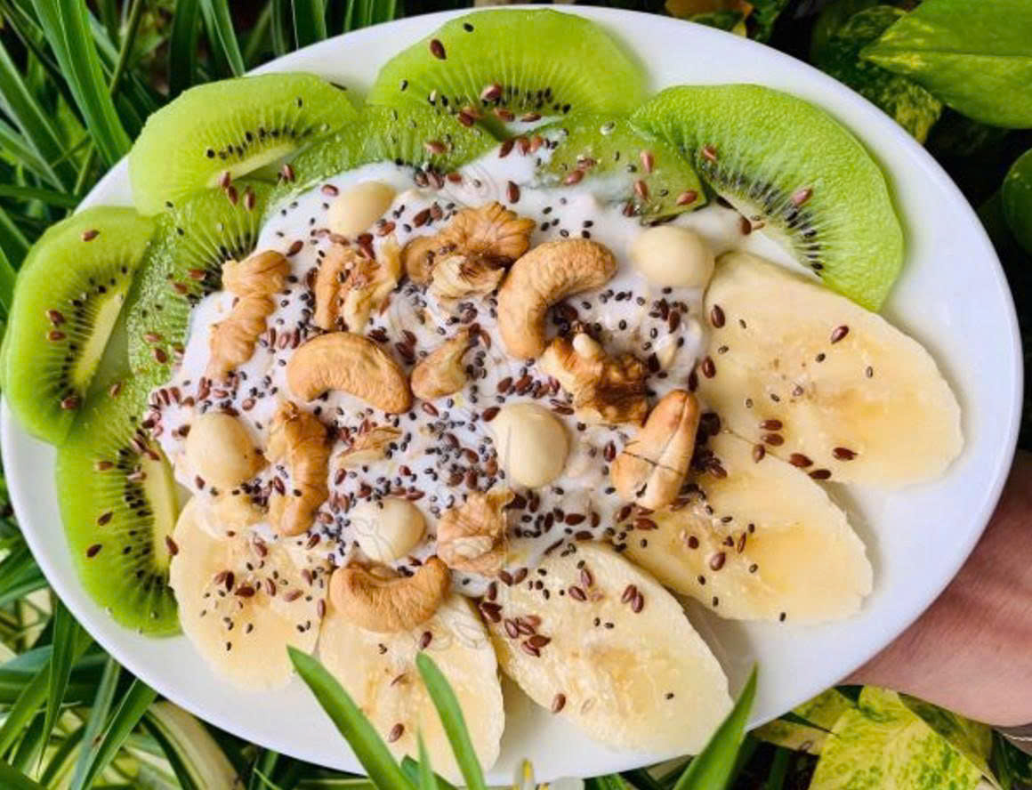 Một công thức cổ điển nhưng chưa bao giờ lỗi thời. Sữa chua không đường kết hợp cùng hạt óc chó và chuối chín tạo ra hương vị béo ngậy, ngọt nhẹ tự nhiên.