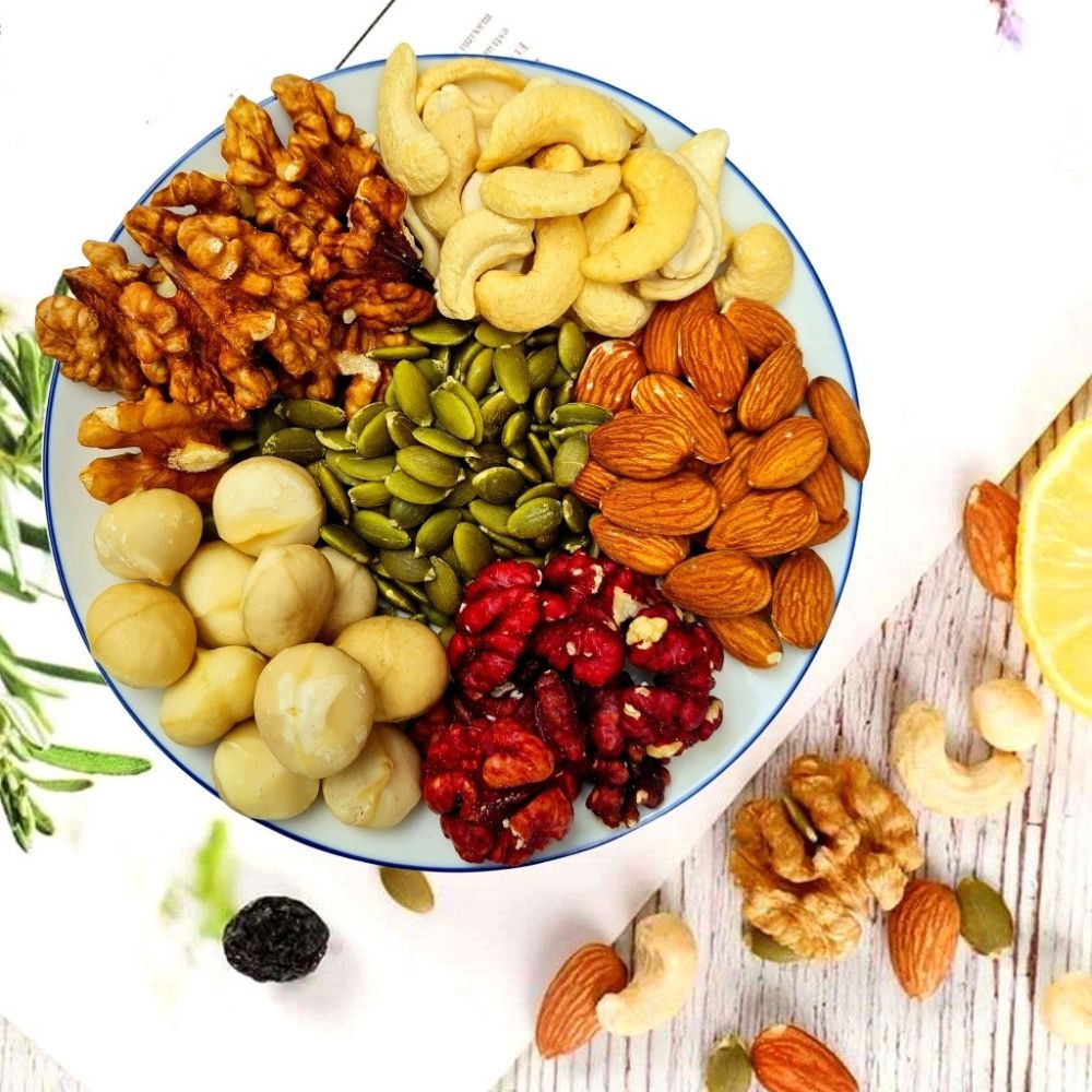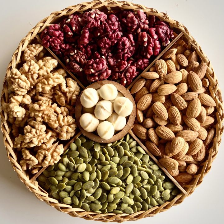 Hạt dinh dưỡng còn ghi điểm nhờ tính linh hoạt. Có thể dùng trực tiếp, rang nhẹ đãi khách, trộn salad, làm bánh Tết healthy hoặc đóng gói thành hộp quà sang trọng. Chỉ cần một khay hạt đẹp mắt, không gian ngày Tết cũng trở nên tinh tế và hiện đại hơn hẳn.