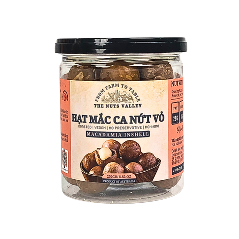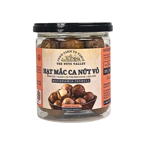Hạt mắc ca – "nữ hoàng của các loại hạt" – nổi tiếng với vị béo ngậy, giòn tan, và giá trị dinh dưỡng vượt trội. Mắc ca nhà The Nuts Valley được tuyển chọn từ nông trại đạt chuẩn, tách vỏ sẵn, rang mộc giữ nguyên vị – là món ăn vặt vừa ngon vừa xịn.